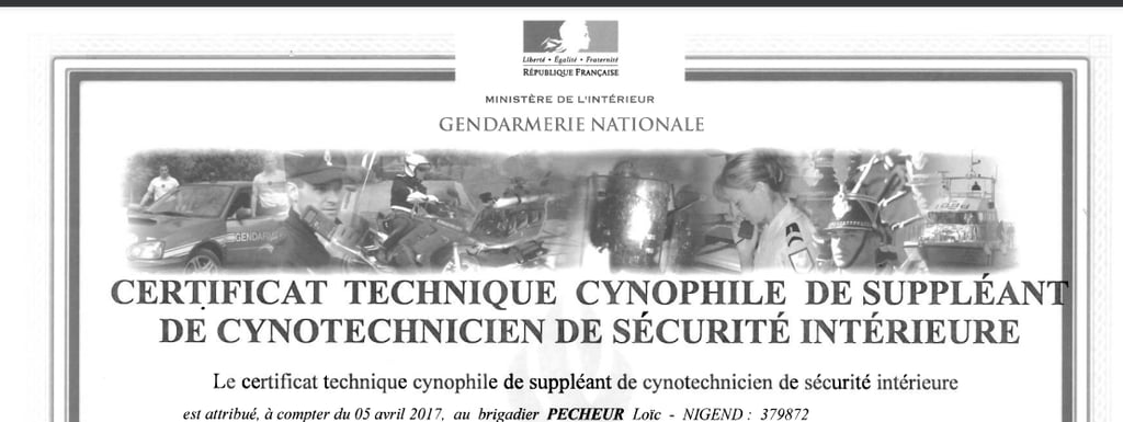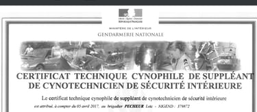2017 : Formation de suppléant Cynotechnicien de sécurité intérieur : spécialisé recherche de personne / défense du maitre